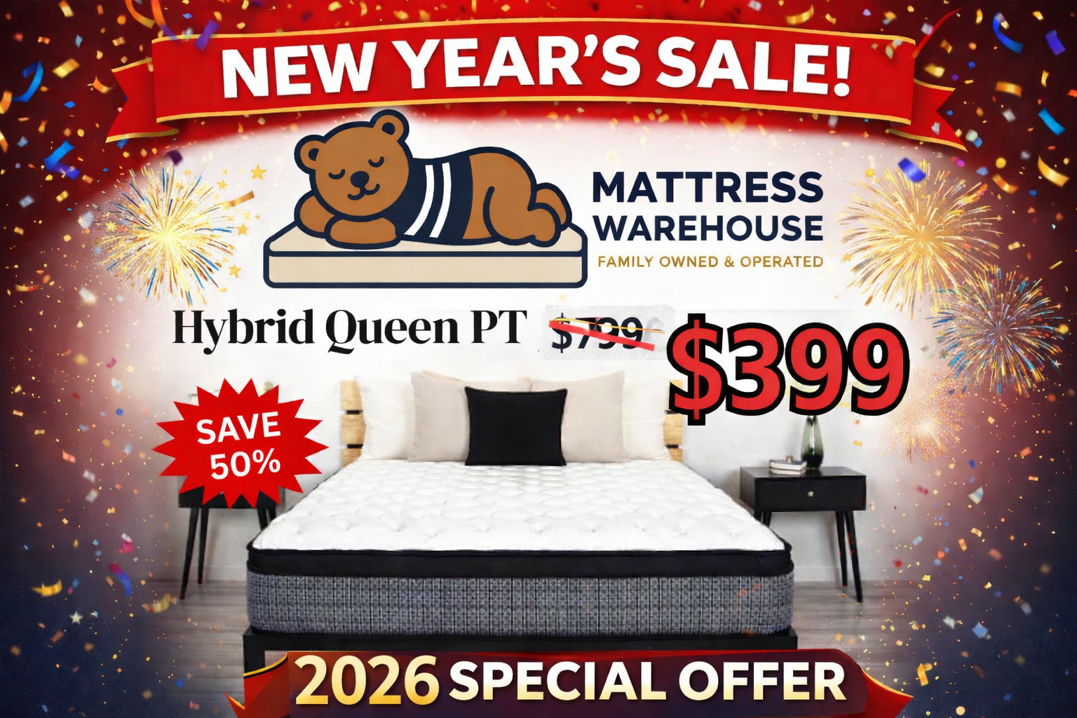 We are Michigan’s leading Family Owned and Operated Mattress Store. We serve Mid Michigan and Northern Michigan with two locations: Flint Township and East Tawas.